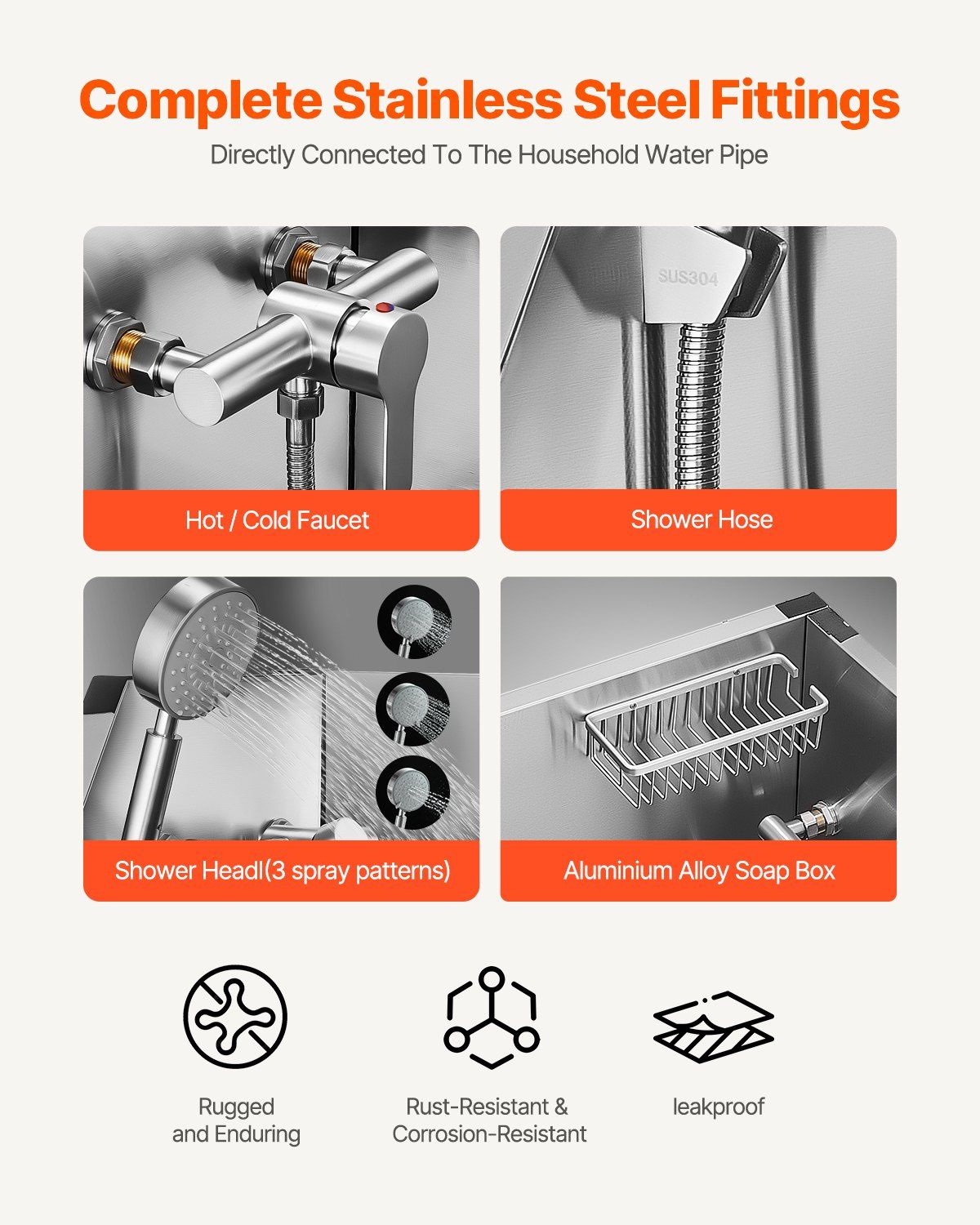 · Complete Accessories: This dog wash station comes with a showerhead, faucet, and a direct connection to a home hose, built for durability. It also includes a cleaning cloth, squeegee, brush, and gloves, ensuring your pet enjoys the full bathing experience