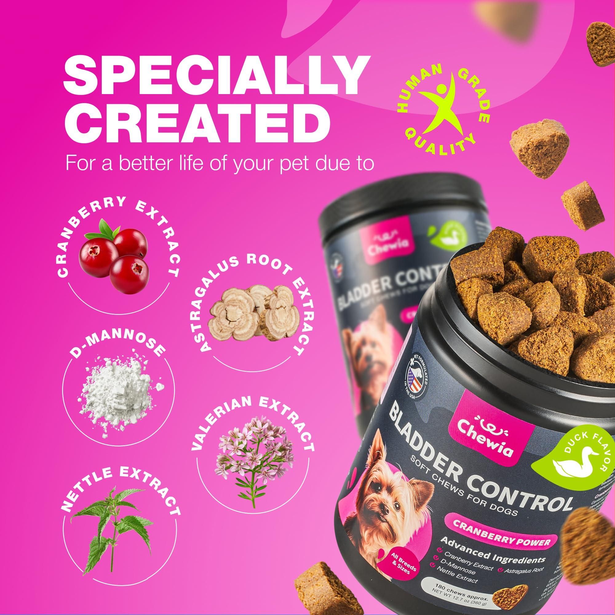 2.bladder control for dogs: our cranberry dog chews support kidney & bladder health, help normalize bladder muscle function, and eliminate waste for comfortable urination. suitable for dogs of all sizes