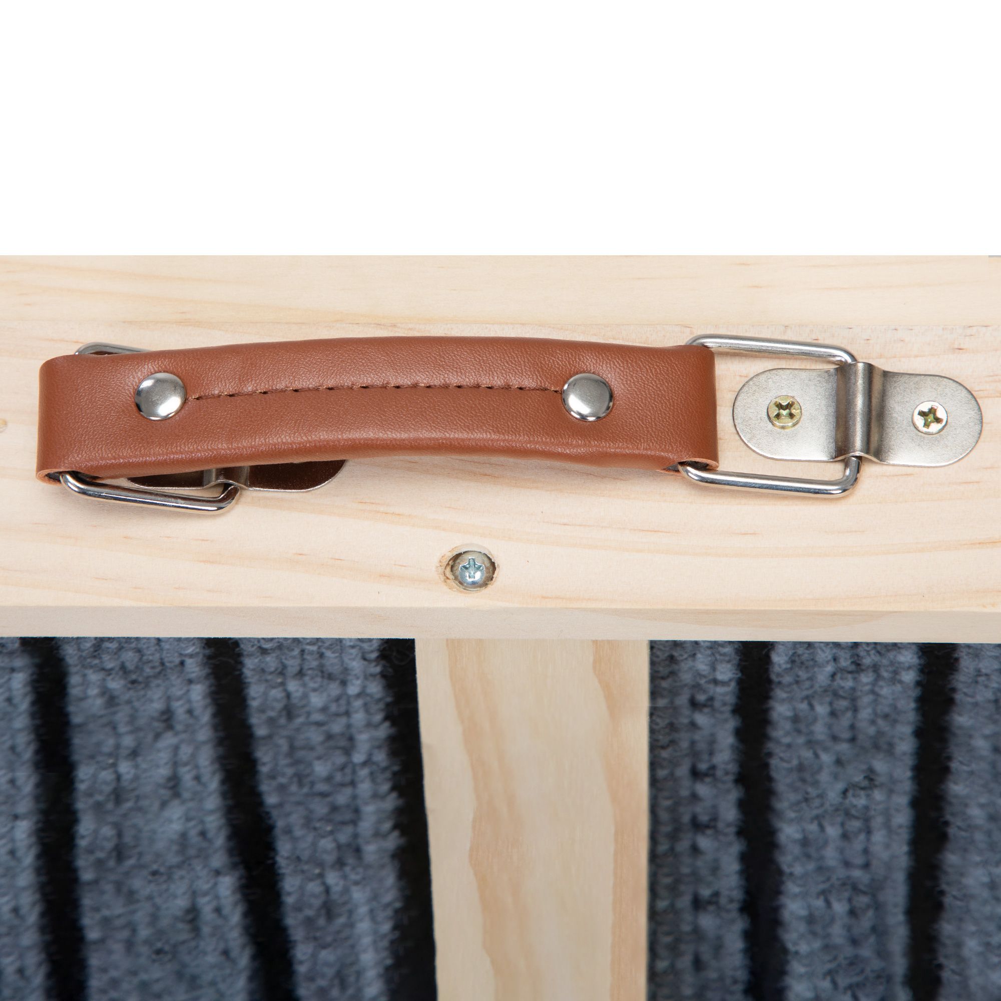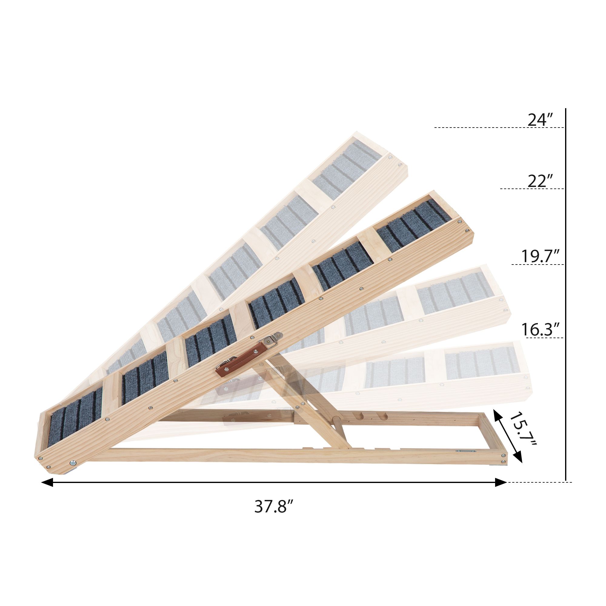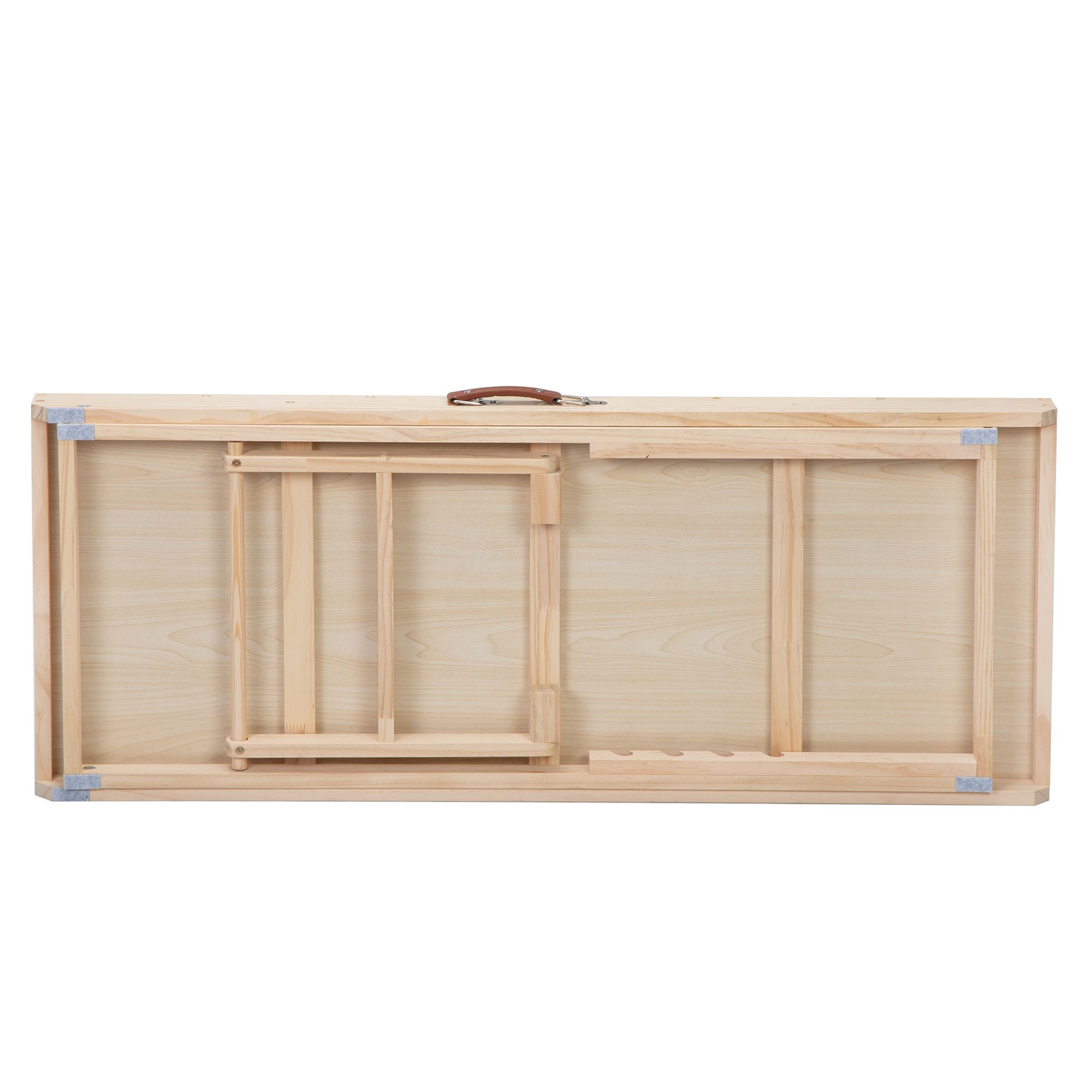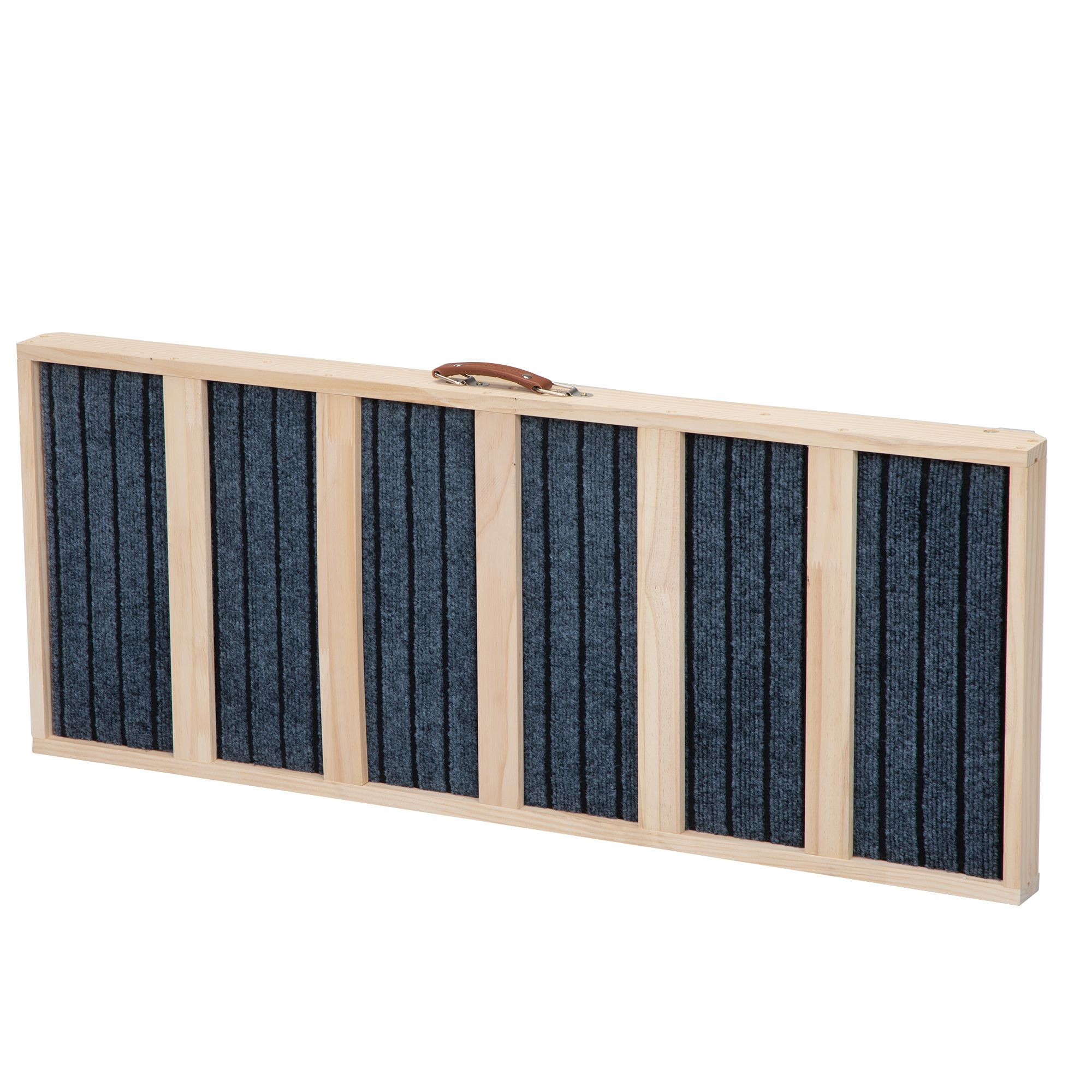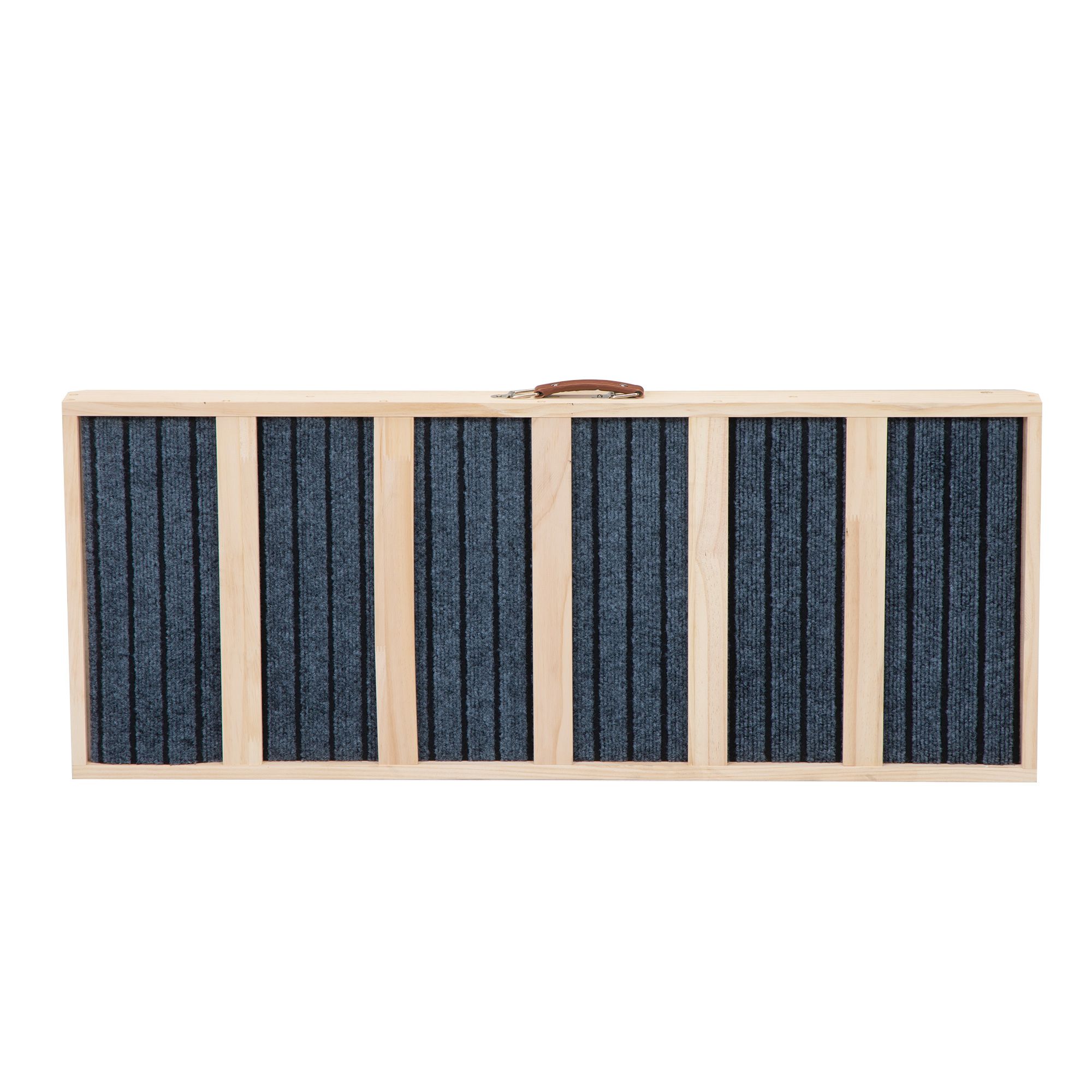 The product is divided into two structures: upper and lower, with a bottom support wooden strip width of 3cm and a thickness of 1.5cm; The size of the wooden strip in the middle of the ramp is: 37 * 4 * 1.2cm; The board on both sides of the ramp is 6.5cm wide and 1.5cm thick, with a leather handle on the side for easy movement, and a lock buckle at the bottom and ramp