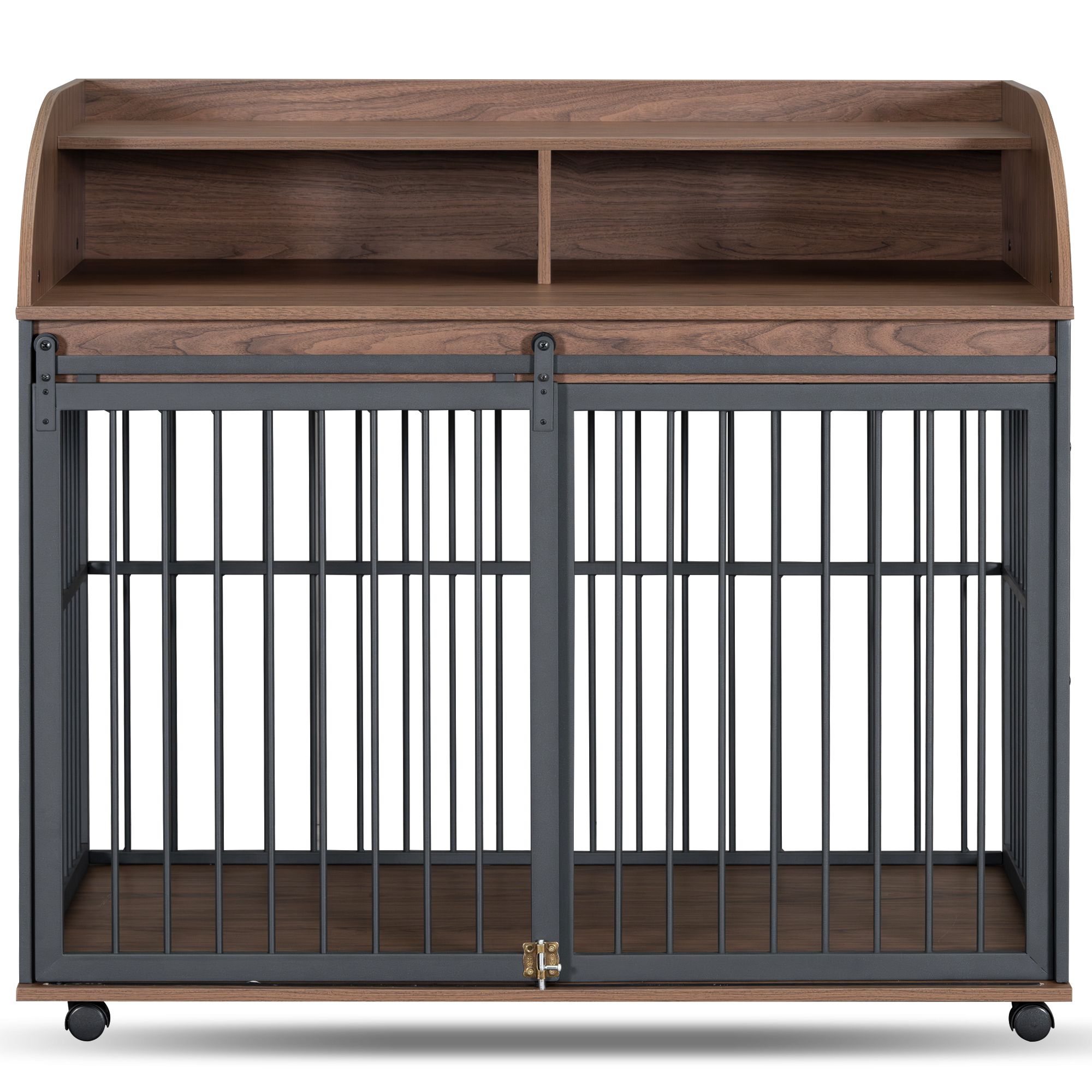 Sliding Door Design & Space Saving: The sliding barn door is designed to allow for easier entry and exit for dogs, with a lock for security. When in a small space, you don't have to worry about the door of the dog cage not being able to open fully.