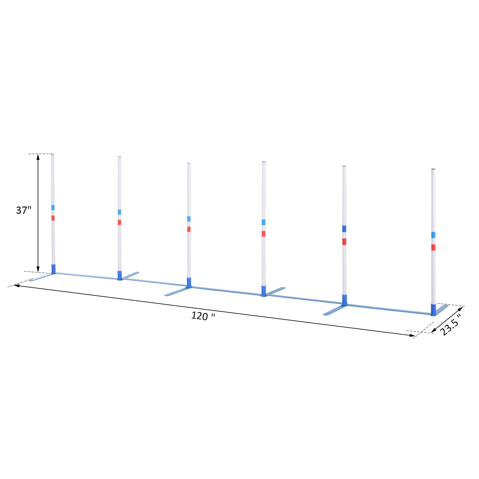 5.- DOG HURDLES DIMENSION: Overall dimension: 120"L x 23.5"D x 37"H, Pole size: Φ1".