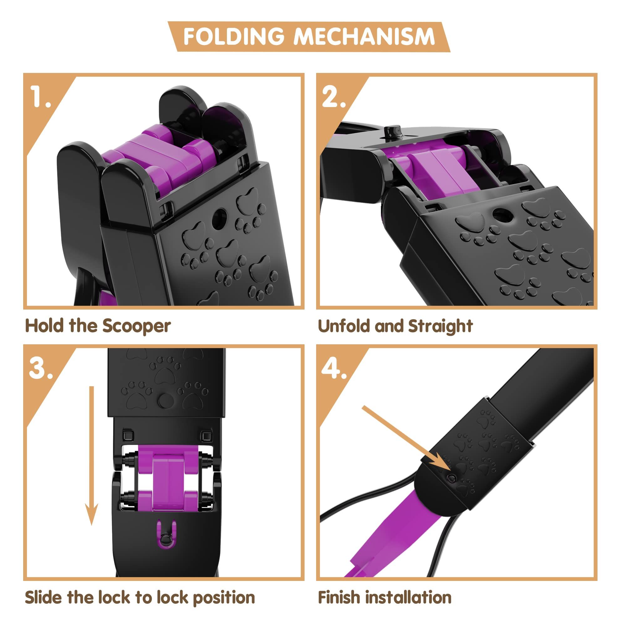 3.Compactness. The foldable design makes the dog waste scooper convenient for travel or walking. A dog pooper scooper for yard unfolds quickly and effortlessly, without getting stuck. You can use the dog waste grabber with a paper or plastic bag to prevent it from getting dirty.