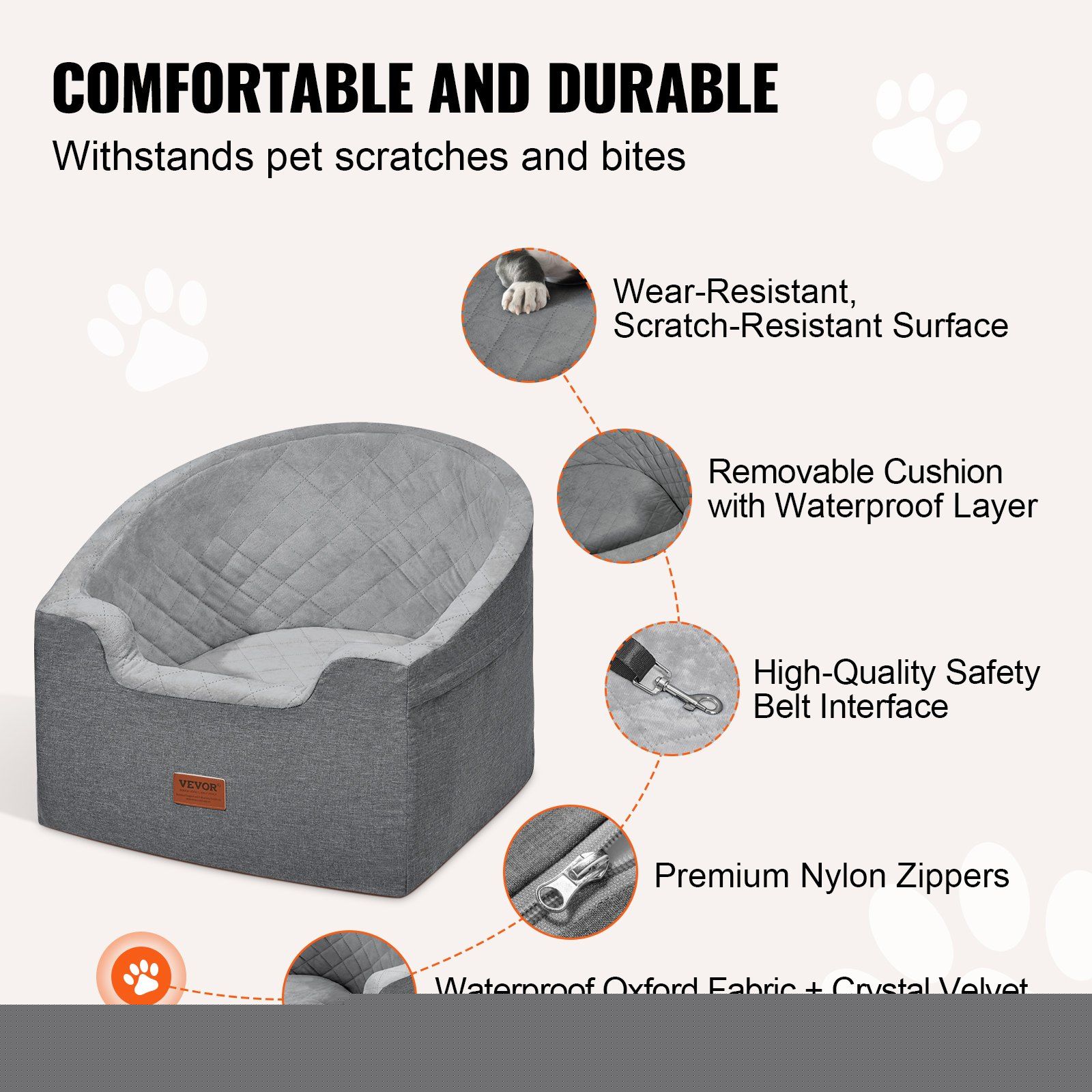 4.Easy to Clean: Designed for convenience, this puppy car seat has a fully removable cover and built-in sliding zipper. Take out the filling and the cover can be machine washed, making maintenance simple and hassle-free.