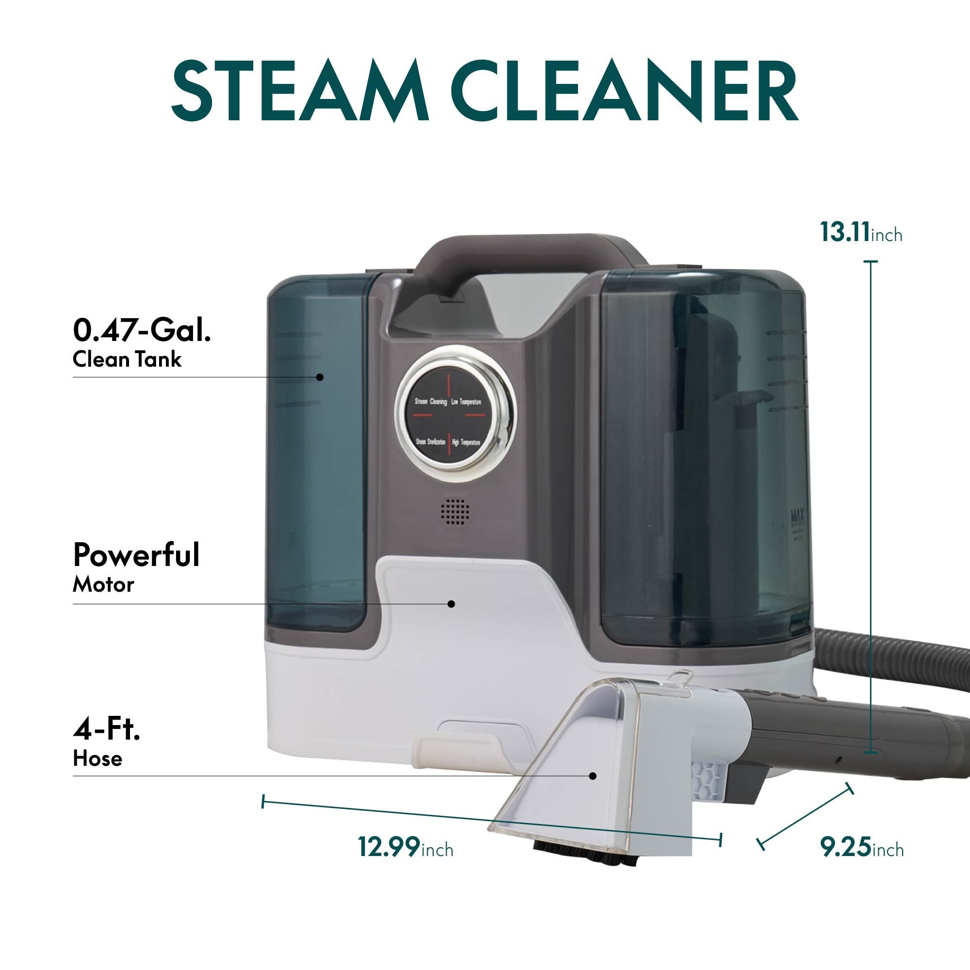 1. "High Power and Versatile Cleaning Modes:": "Featuring a 450W motor and a 1200W heating boiler, this steam cleaner offers four different modes:1.Steam cleaning mode with high-temperature steam and vacuum suction.2.Steam disinfection mode with steam and vacuum suction only.3.Cold water spray with vacuum suction.3.Hot water spray with vacuum suction. These modes ensure efficient and thorough cleaning for all your upholstery needs."