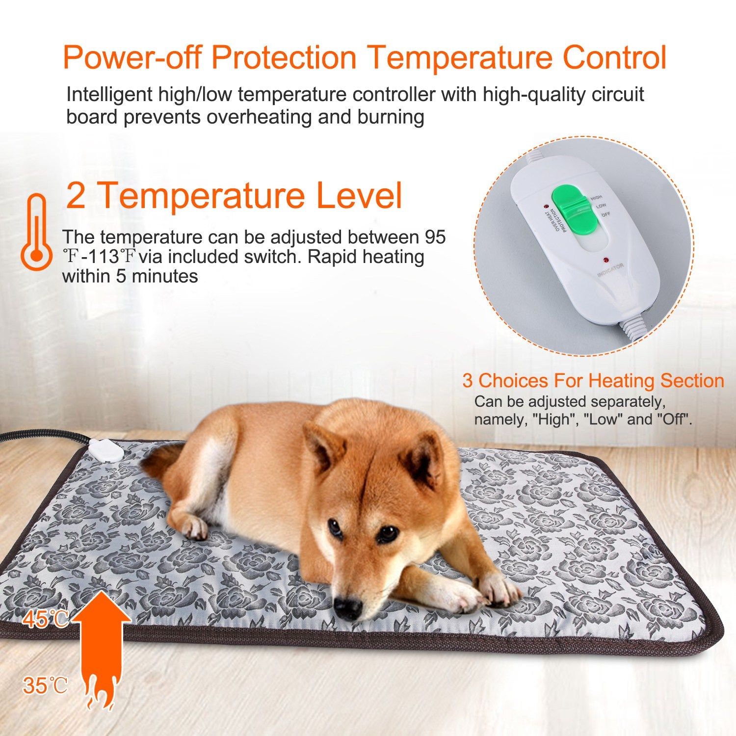 * Power-off Protection Temperature Control*: Intelligent high/low temperature controller with high-quality circuit board prevents overheating and burning (The temperature can be adjusted between 95℉-113℉). It can avoid overheating to ensure pet safety and prolong the service life of the product.