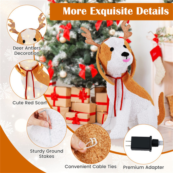 ● Lighted Christmas Dog: Featuring 164 brilliant built-in LED lights, this adorable Christmas dog illuminates your living space and creates a warm festive atmosphere. You can display it in your yard, porch or living room when needed.