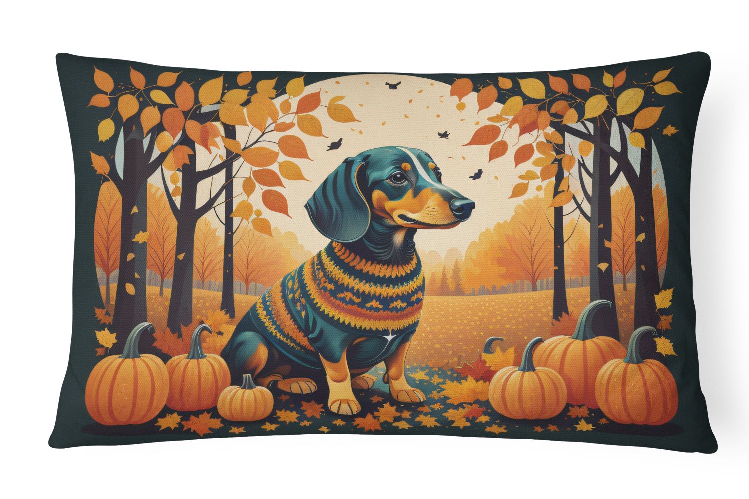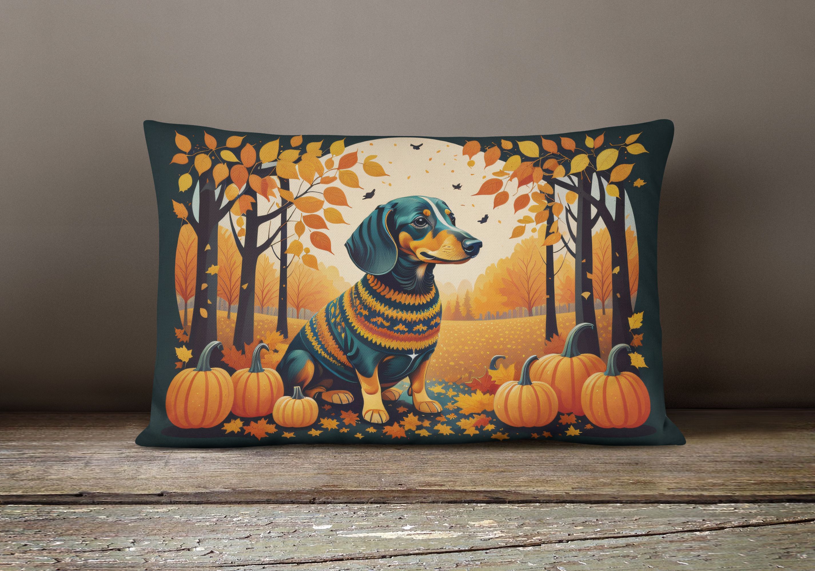 Throw Pillow featuring breed specific Dachshund artwork. Embrace the fusion of comfort and style with Caroline's Treasures Fabric Decorative Pillow. This 12x16 inch outdoor pillow is designed to complement your patio furniture, adding a splash of color and artistry to your outdoor setting. Constructed with a 100% Polyester Fabric pillow sham filled with a plush pillow form, this cushion is as comfortable as it is durable. Our outdoor pillow utilizes a novel fabric, meticulously woven for enhanced water resistance. This soft canvas material is equally suited for your indoor couch as well as outdoor settings such as the patio, porch, or veranda. To ensure enduring vibrance, we employ colorfast dyes resistant to fading even when subjected to weather elements. The making of this pillow involves the delicate sewing together of three fabric pieces to create a sham, into which a polyester insert is carefully placed. The result is an overstuffed pillow that tenaciously holds its shape. With both the sham and the pillow insert crafted in the United States, these handmade pillows are a testament to superior local craftsmanship. Note that as these pillows are handmade, sizes may slightly vary, enhancing their unique appeal. Enjoy comfort in style with Caroline's Treasures Fabric Decorative Pillow.