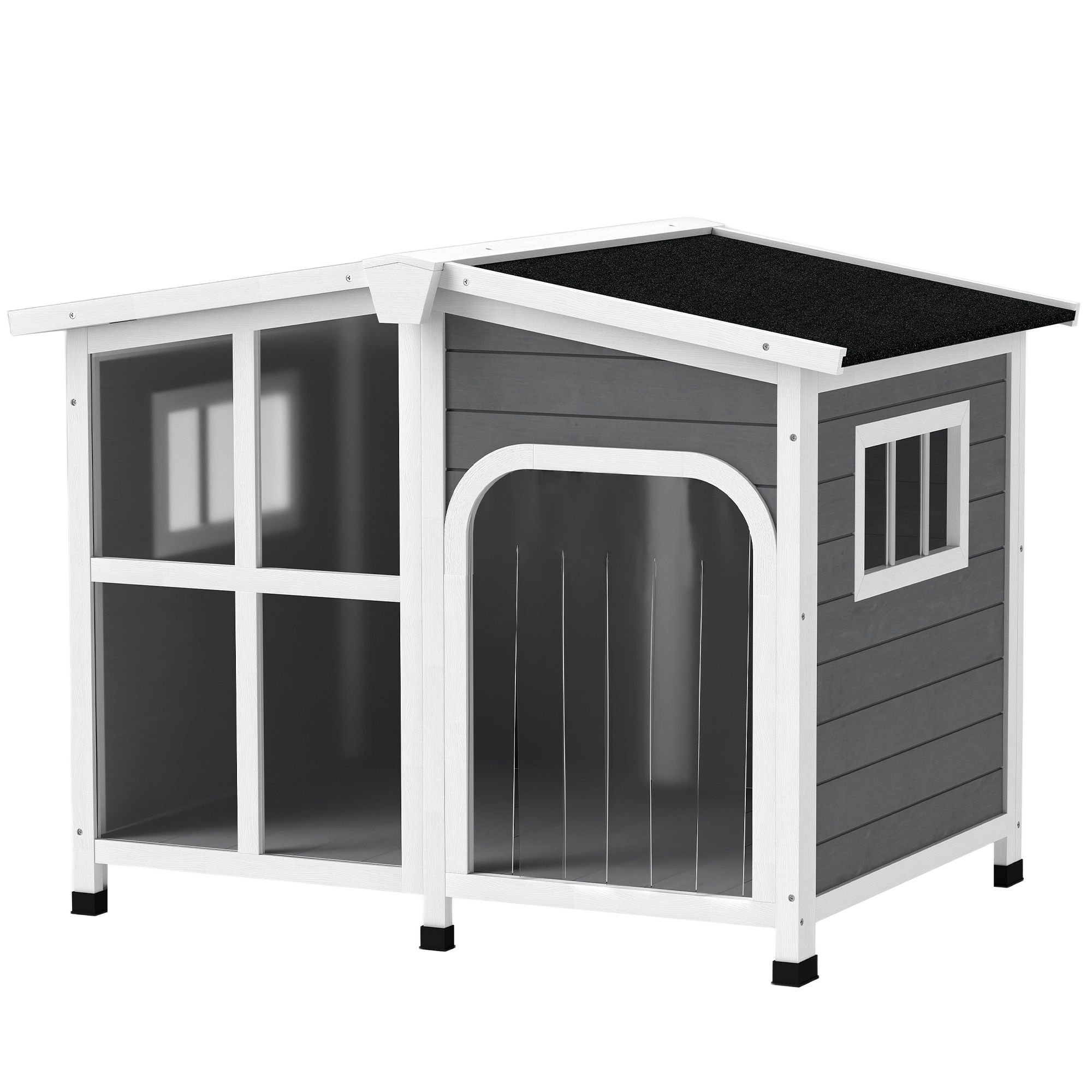 Your dog is sure to enjoy a big PawHut pet house. An openable roof lets you reach in to pet your pup and make eye contact while giving them commands. Its outdoor-strong materials will assure quality that survives rain, while the cabin design offers a cute look for your yard. What's safer for the Earth is often safer for our pets. We used climate-friendly materials, treating the air we breathe with care.