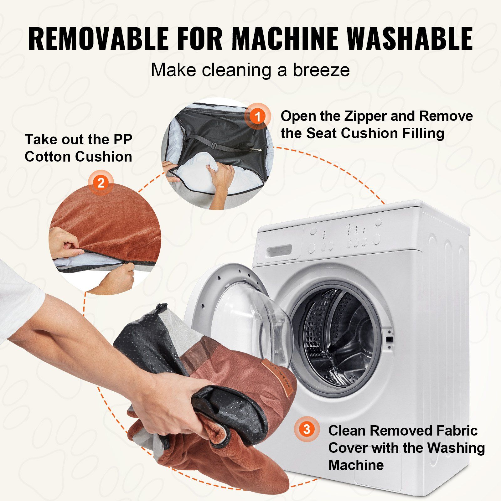 4.Easy to Clean: Designed for convenience, this puppy car seat has a fully removable cover and built-in sliding zipper. Take out the filling and the cover can be machine washed, making maintenance simple and hassle-free.