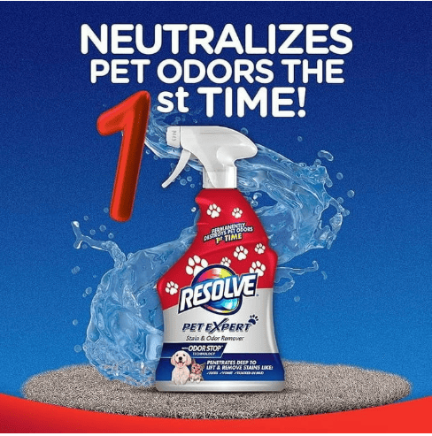 Product detailsResolve 22 oz Pet Expert Stain & Odor Remover has a powerful formula that permanently destroys pet odors the 1st time leaving a fresh original scent. It penetrates deep to lift and remove stains like urine, feces, vomit, and tracked-in mud. Designed to clean and freshen your carpet, Odor Stop Technology neutralizes unpleasant odors and discourages pet re-soiling while leaving behind a fresh scent. Resolve Pet Expert Stain & Odor Remover is suitable to use around pets. Say goodbye to pet odors and hello to more love from your dogs and cats!Resolve Odor Stop technology neutralizes pet & other household odorsRemoves dirt & tough pet stains like urine, vomit & fecesHelps prevent pet re-soilingSuitable to use around pets22 oz original fresh scent
