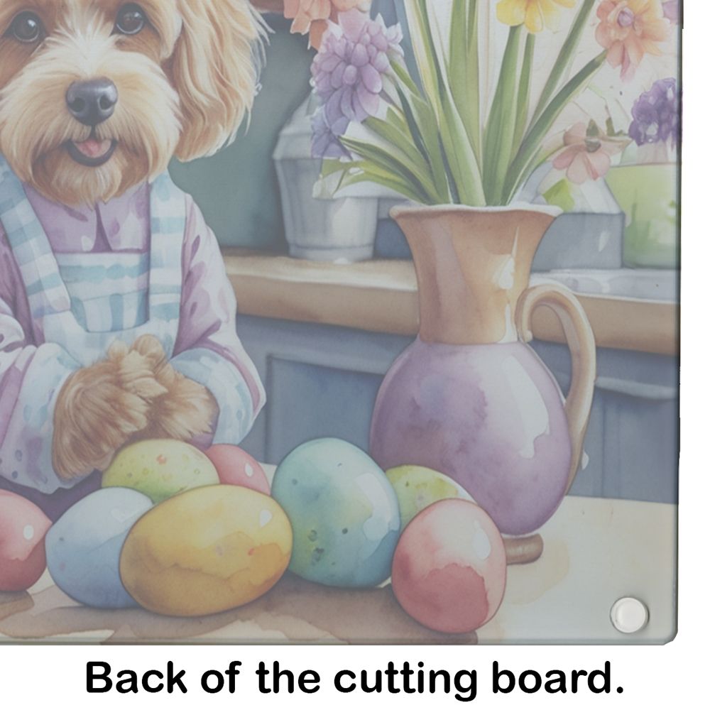 Glass Cutting Board featuring breed specific Cockapoo artwork. Celebrate Easter with this Easter Cutting Board. Introduce your kitchen to the vibrant, large Decorative Glass Cutting Board from Caroline's Treasures. Crafted from resilient tempered glass, this board is not only a utilitarian necessity but also a colorful art piece. With its generous dimensions of 15 inches in height and 12 inches in length, it offers ample space for all your cutting needs. Every piece showcases captivating artwork from distinguished artists, bringing an aesthetic edge to your kitchen. Beyond its attractive design, this cutting board ensures your countertop stays pristine and unscathed, owing to its heat-resistant properties. Engineered with user convenience in mind, it features non-skid feet for stability, and rounded corners for additional safety. Its robust construction renders it virtually unbreakable, guaranteeing longevity. The board comes with protective feet bumpers, maintaining its position during use. This product is recommended to be hand washed only. Proudly printed and assembled in the United States, this cutting board exemplifies superior craftsmanship. With Caroline's Treasures' Decorative Glass Cutting Board, you're investing in a blend of functionality and artistic flair.