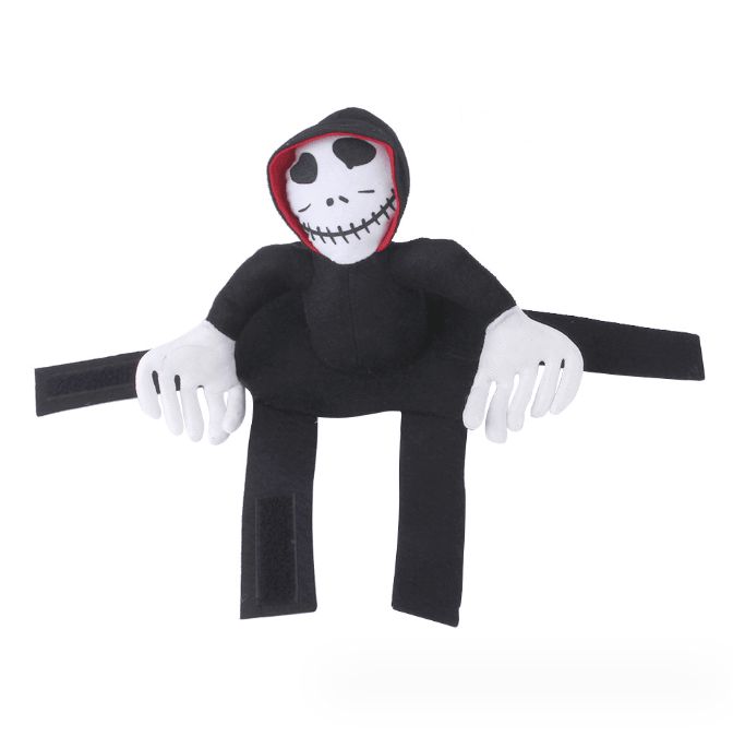 Hilarious Ghost Rider Design: This spooky and funny pet costume features a ghost figure riding on your dog's back, perfect for adding humor to your pet's Halloween attire.