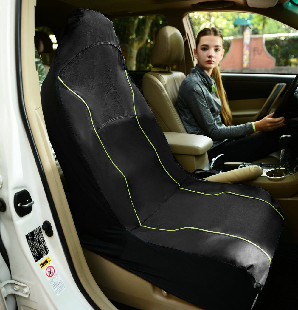 The Pet Life Open Road Single Seated Car Seat cover is composed of durable oxford nylon with elastic sided lycra polyester that wraps to cover any single seated seat on all car makes and models. This car seat protector is great when traveling with pets or children. It will keep the car nice and clean while helping catch any shredded or unwanted hairs off the car's interior. The surface is scratch proof and features Velcro seat belt openings when connecting to the seat and is waterproof. The head rest option also slides back for those who want that aspect exposed. Lightweight and crafted to last. Includes a nice carrying case which makes it perfect for traveling. Easy to clean with a damp cloth. Available in multiple colors.