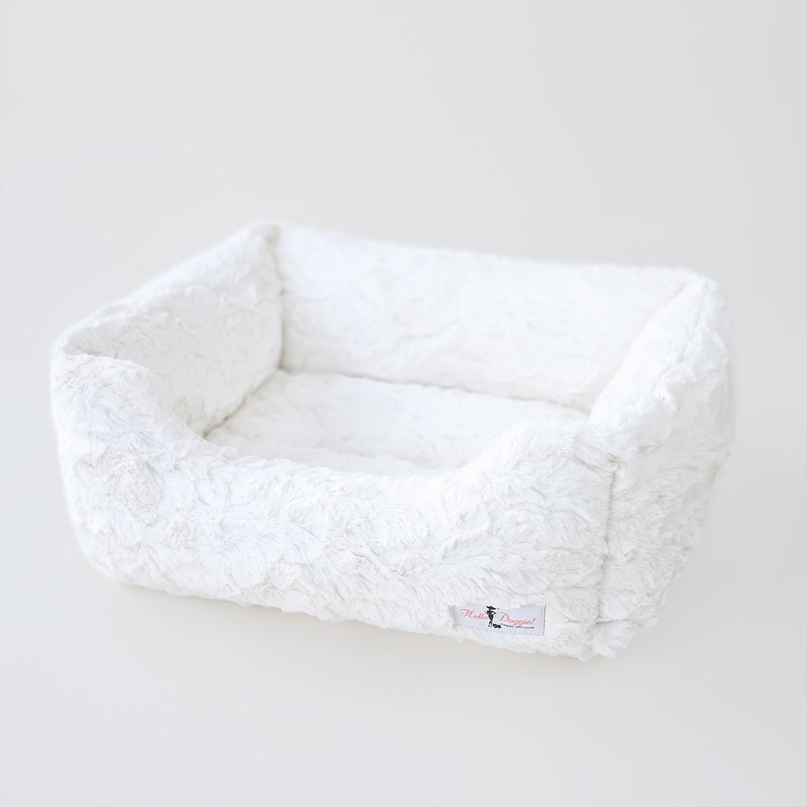 The Bella Bed Collection by Hello Doggie is soft to the touch you'll want to lay in them too! These handmade beds are made from the highest quality of fabric and stuffed to perfection with 100% poly-fiber fill for longer-lasting fullness and durability. Available in an array of bright colors for a fun vibe or warm colors that match your home furnishings. Reversible, machine washable and tumble dry for easy care. Small Bed - 10" x 7"    |    For dogs up to 4 lbs MSRP - $79.99 Large Bed - 14" x 10"  |    For dogs up to 10 lbs MSRP - $99.99 Bed is handmade and sizes may vary slightly Made in USA.