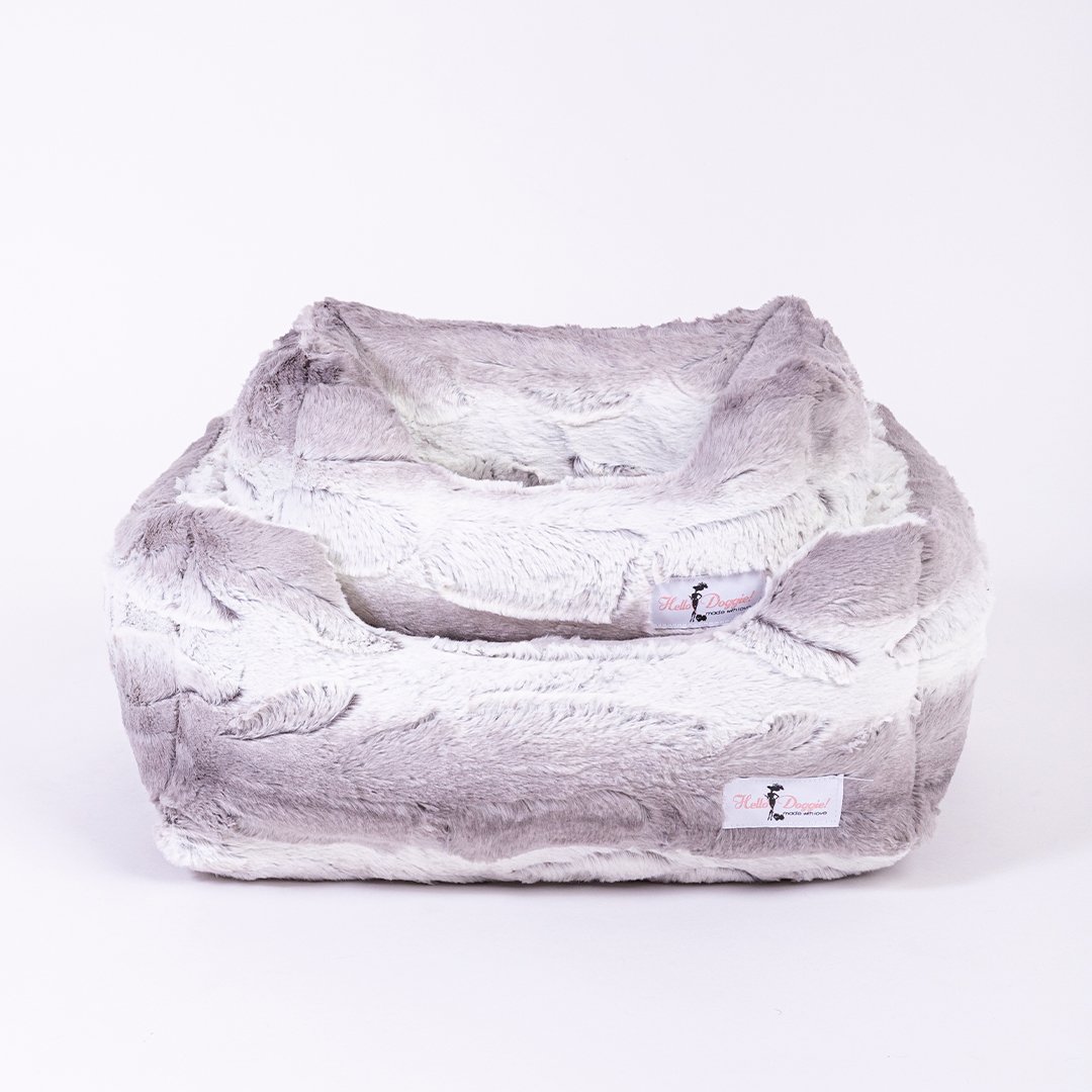 Hello Doggie's Cashmere collection is crafted with ultra soft high quality fabric that will have your baby drifting off into sweet dreams. This plush dog bed is filled with 100% poly-fiber fill for that soft sinking feeling. Reversible for easy care. Wash on gentle cycle, tumble dry low. Dimensions Small 10" x 7"     |     Up to 4lbs  MSRP - $99.99 Large 14" x 10"   |    Up to 10lbs MSRP- $119.99 *Beds are handmade sizes may slightly vary. Made in USA.