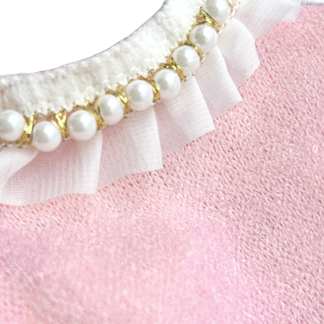 Introducing the exquisite Dream Pearls Sweater by Hello Doggie, a showcase of elegance and sophistication for your beloved furry baby. This stunning sweater is meticulously crafted from a premium cotton knit fabric, ensuring a lusciously soft and cozy feel for your furry friend. Featuring delicate handmade lace and pearls meticulously embellished with hints of gold thread. This intricate detailing adds a touch of opulence and timeless charm to your pet's outfit, making them stand out in every setting. Hand wash, Air dry or tumble on low. Sizes SM - LG  MSRP: $49.99 *Sweater is handmade, sizes may vary slightly. Made in USA.