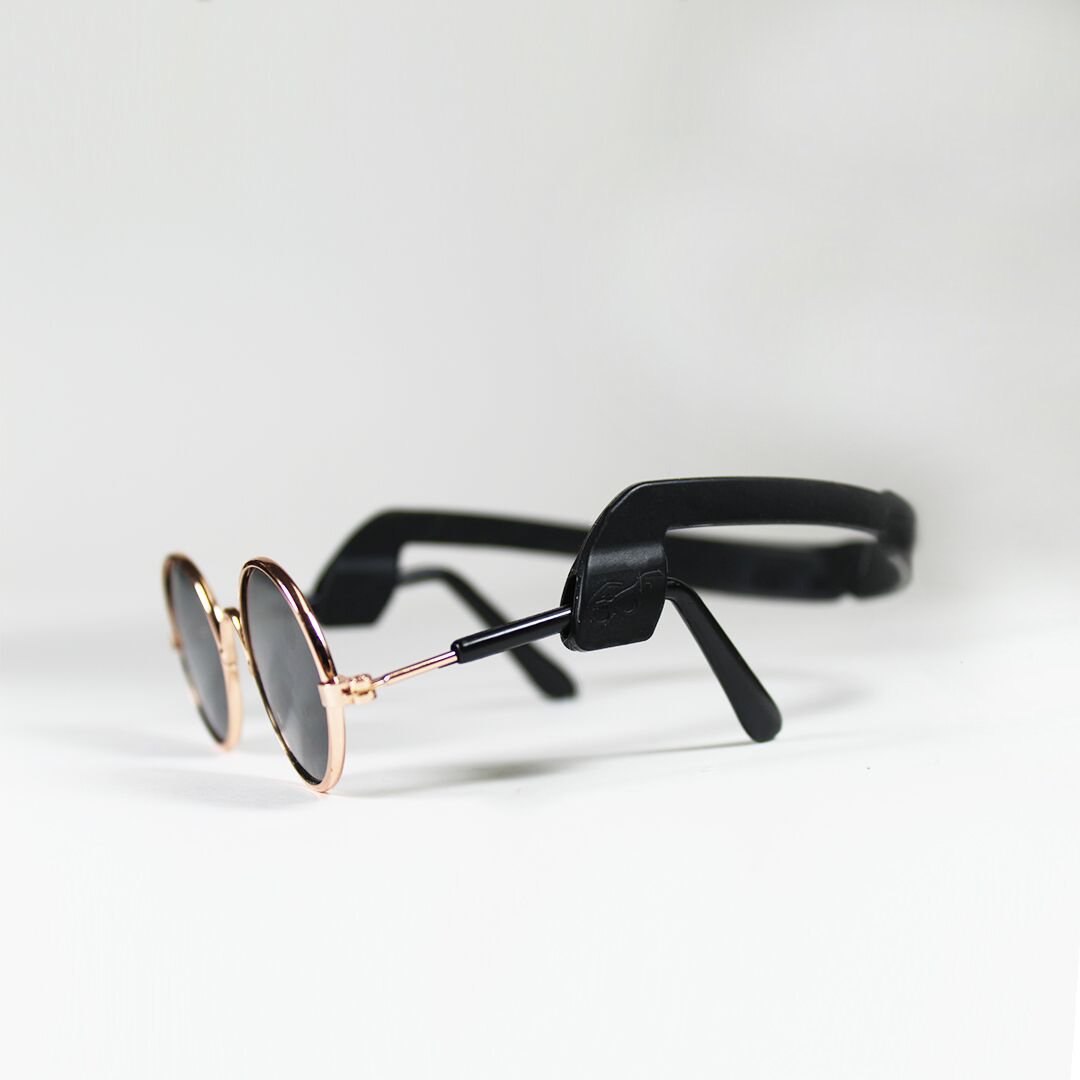 Complete your baby's outfit with a pair of our luxury pet sunglasses. You can choose to pair it with a clear strap or a black strap which keeps the sunglasses securely in place. These stylish glasses are accented with a rose gold frame to add that pizzazz to any attire. Size - Fits small dogs. MSRP $12.00