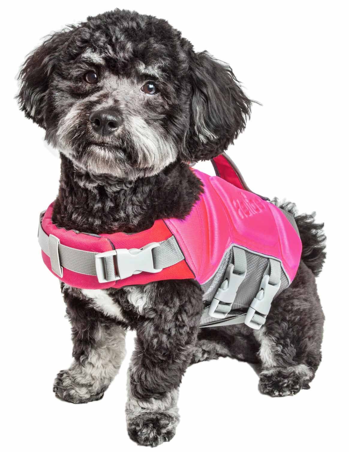 The Dog Helios 'Tidal Guard' Multi-Point Strategically-Stitched Reflective Pet Dog Life Jacket Vest is a full body system geared with ultimate flotational protection with Mobility and Safety in mind. Features a specially treated 600D Oxford Nylon Exo-Shell that Durable, Tear Resistant and Reflectively Stitched for added night emergency safety and visibility. This Life Vest features a fused full flotational body with Triple Dual-sided extended buoyancy points for a full free range of motion with added flotational protection. Improved mobility helps prevent freezing or over-working of muscles during swimming activities. This Life Jacket features an above-top durable rescue handle for easy rescue in water by boat hook or by hand grab and is cross stitched for added Durability. Features a Dual harness ring along the back-side and 3 Durable thicker-grade Adjustable Nylon buckle straps that secure around the body with underneath Ultra-Thick and Durable Velcro enclosures that Velcro underneath the below-the-belly Nylon Straps and below the Neck straps for added security. Get Outdoors with Dog Helios! Available in Multiple Sizes and Colors.