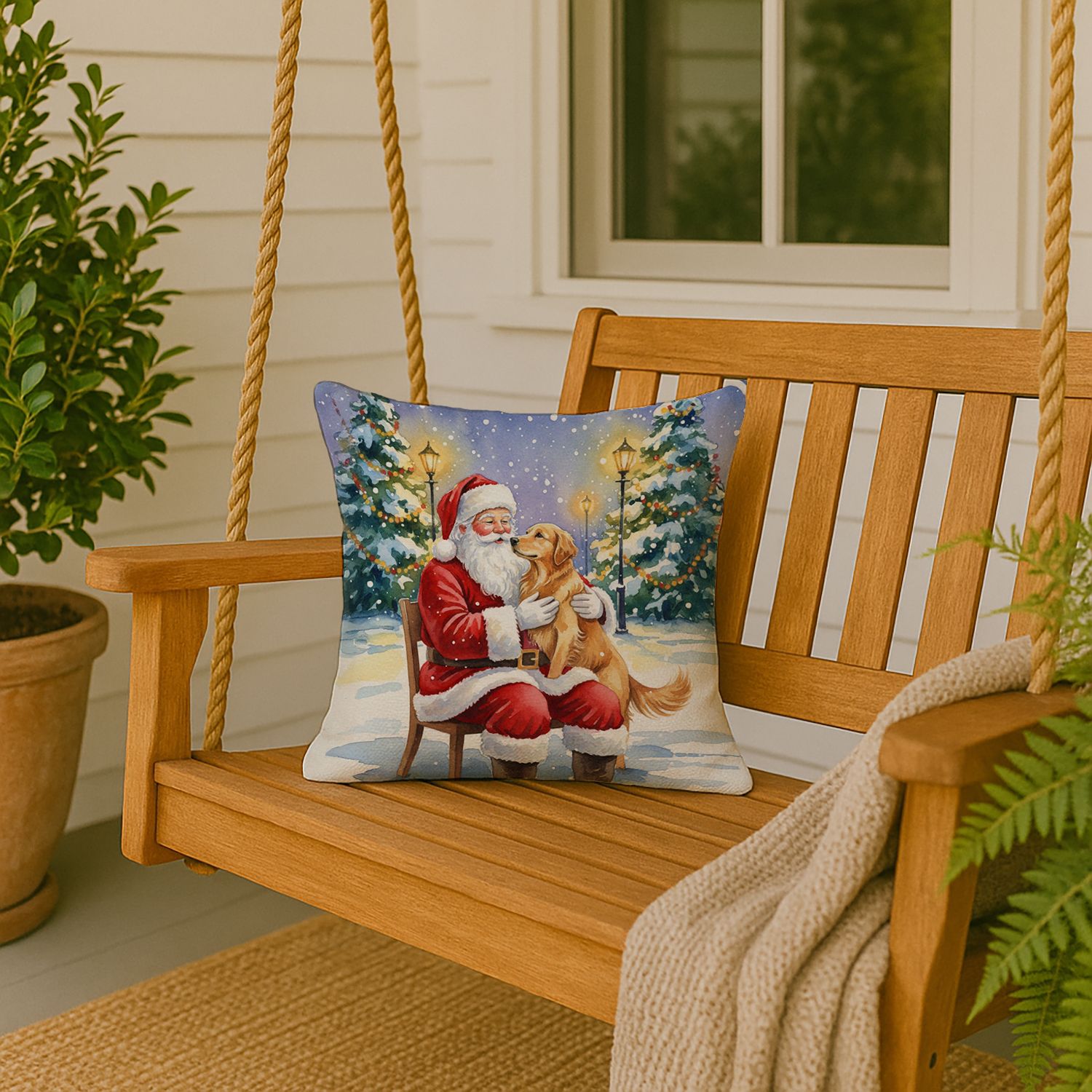 Throw Pillow featuring breed specific Golden Retriever artwork. Celebrate Christmas with this Christmas Pillow. Revitalize your outdoor or indoor living space with Caroline's Treasures 18x18 Fabric Decorative Pillow. With a generously sized dimension of approximately 18 inches by 18 inches, this pillow makes a comfortable and aesthetic addition to any seating area. Made from a unique, water-resistant material developed by Caroline's Treasures, the pillow sham is 100% polyester fabric that's durable and ready to weather any condition. Its vibrant, full-color artwork will not fade over time as it is dyed with color-fast dyes. Whether you place it on your patio furniture, porch, veranda, or indoor couch, its soft canvas fabric ensures a cozy experience. The pillow is handcrafted in the United States, featuring a sham created from three pieces of fabric and a polyester insert for enduring shape and overstuffed comfort. Despite being robustly built to endure the outdoors, it is as soft and snug as your favorite indoor cushions. Please note, as all our pillows are handmade, sizes may vary slightly, adding to the charm of this unique decorative item.