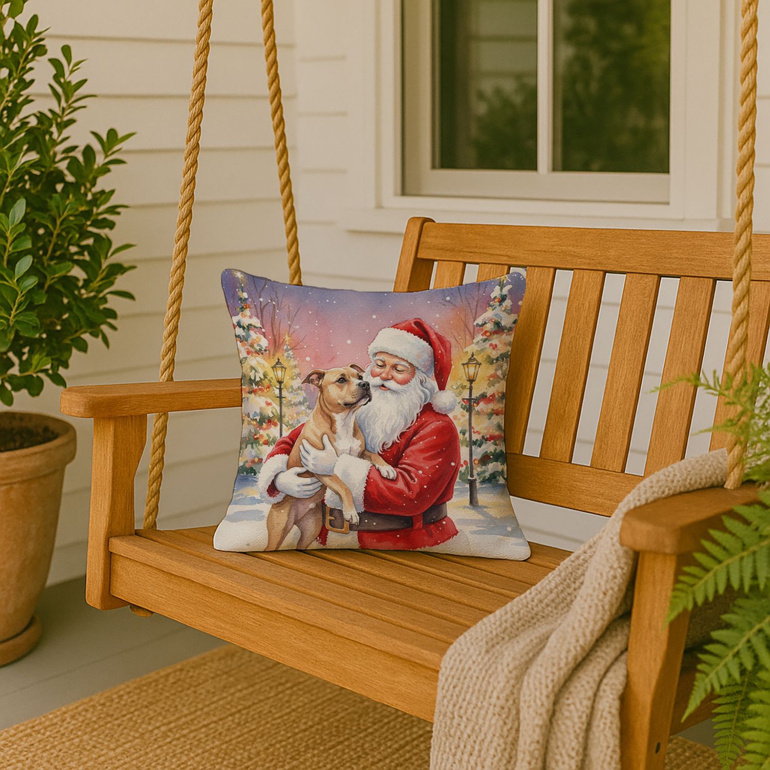 Throw Pillow featuring breed specific Pit Bull Terrier artwork. Celebrate Christmas with this Christmas Pillow. Revitalize your outdoor or indoor living space with Caroline's Treasures 18x18 Fabric Decorative Pillow. With a generously sized dimension of approximately 18 inches by 18 inches, this pillow makes a comfortable and aesthetic addition to any seating area. Made from a unique, water-resistant material developed by Caroline's Treasures, the pillow sham is 100% polyester fabric that's durable and ready to weather any condition. Its vibrant, full-color artwork will not fade over time as it is dyed with color-fast dyes. Whether you place it on your patio furniture, porch, veranda, or indoor couch, its soft canvas fabric ensures a cozy experience. The pillow is handcrafted in the United States, featuring a sham created from three pieces of fabric and a polyester insert for enduring shape and overstuffed comfort. Despite being robustly built to endure the outdoors, it is as soft and snug as your favorite indoor cushions. Please note, as all our pillows are handmade, sizes may vary slightly, adding to the charm of this unique decorative item.