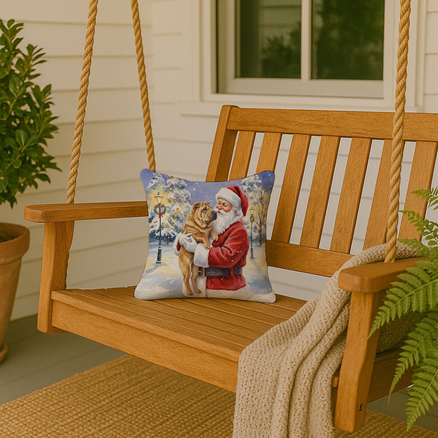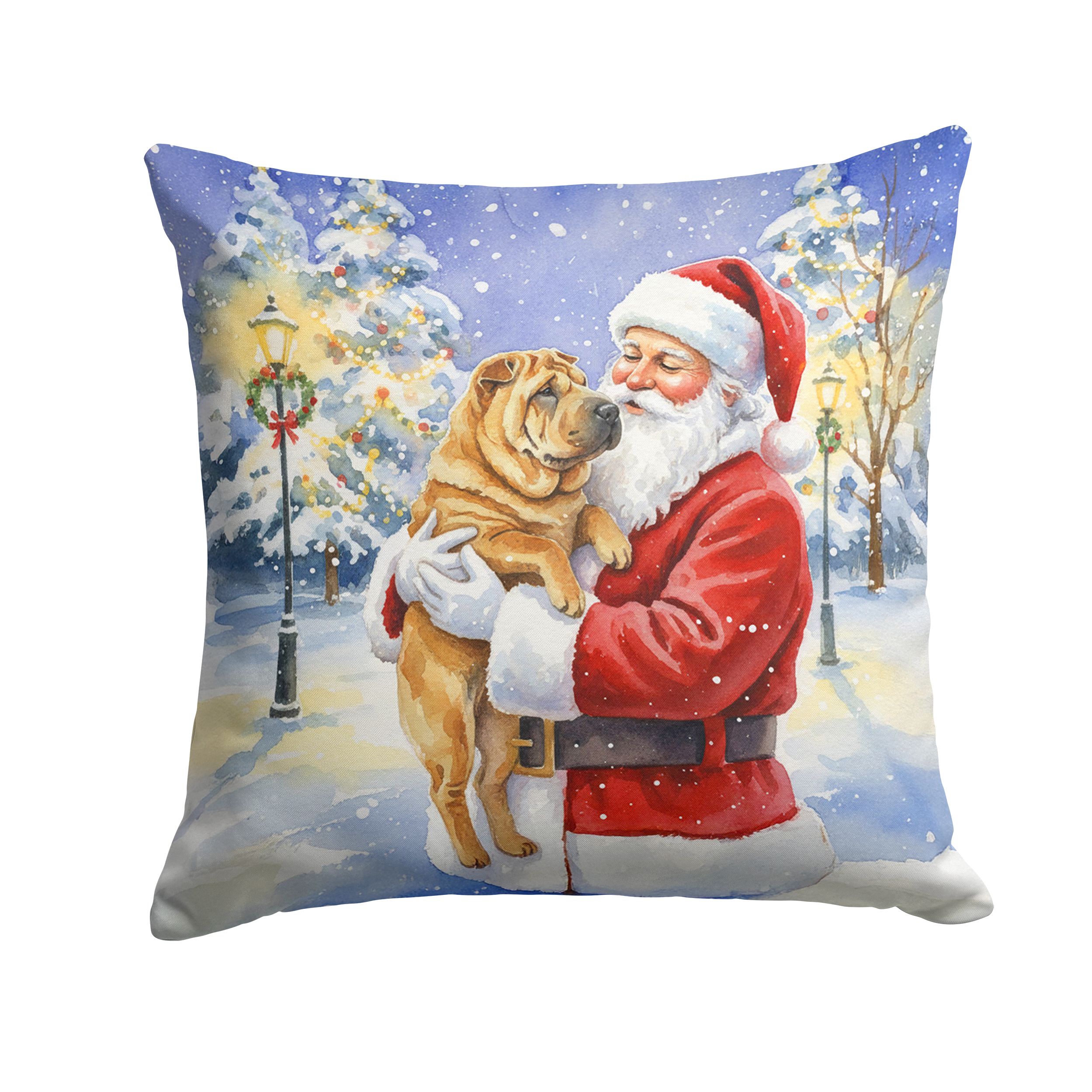 Throw Pillow featuring breed specific Shar Pei artwork. Celebrate Christmas with this Christmas Pillow. Add a touch of vibrancy and comfort to your outdoor seating with Caroline's Treasures Fabric Decorative Pillow. Measuring approximately 14 inches by 14 inches, this outdoor pillow is crafted to elevate the appeal of your patio furniture, infusing it with vivid color and artistic flair. The pillow includes a 100% Polyester Fabric sham filled with a quality pillow form to provide superior comfort. Innovatively made from our brand new material, specifically woven for its water resistance, this pillow is designed for durability. The soft canvas fabric offers versatility in use, fit for your indoor couch or your outdoor patio, porch, or veranda. The fabric is dyed with colorfast dyes built for resilience against weather conditions, ensuring the pillow retains its beauty over time. Constructed by sewing three fabric pieces to create a sham, the polyester insert is then nestled inside to form the pillow, resulting in an overstuffed pillow that maintains its shape. Both the sham and the pillow insert are proudly made in the United States. As the pillows are handcrafted, there may be minor variations in size, further enhancing their unique charm. Experience comfort in style with Caroline's Treasures Fabric Decorative Pillow.