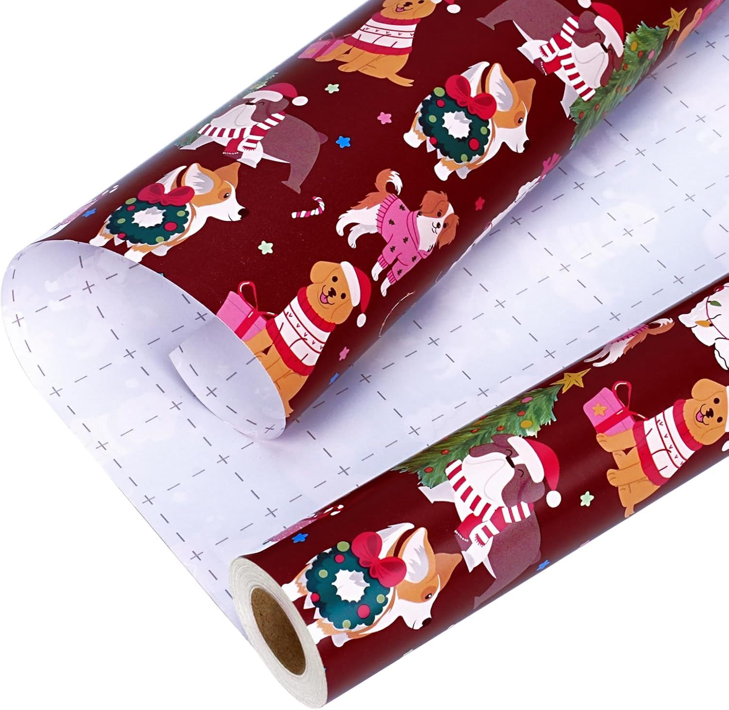 Christmas Dog Wrapping Paper Roll – 17 inch x 33 feet, Cute Holiday Puppy Print with Gifts, Trees & Sleds for Kids, Pet Lovers, Gift Wrap for Xmas, Birthday