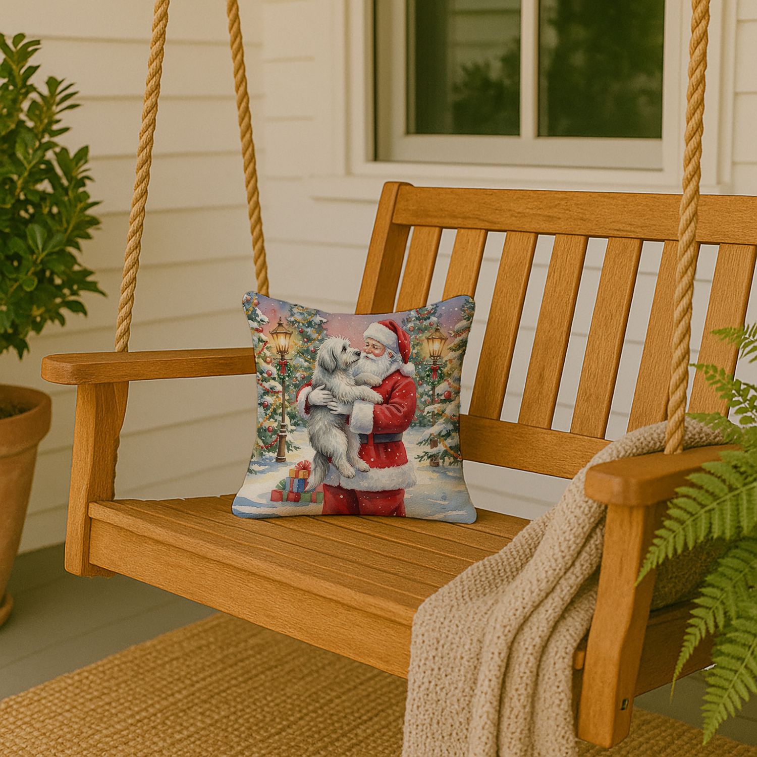 Throw Pillow featuring breed specific Old English Sheepdog artwork. Celebrate Christmas with this Christmas Pillow. Add a touch of vibrancy and comfort to your outdoor seating with Caroline's Treasures Fabric Decorative Pillow. Measuring approximately 14 inches by 14 inches, this outdoor pillow is crafted to elevate the appeal of your patio furniture, infusing it with vivid color and artistic flair. The pillow includes a 100% Polyester Fabric sham filled with a quality pillow form to provide superior comfort. Innovatively made from our brand new material, specifically woven for its water resistance, this pillow is designed for durability. The soft canvas fabric offers versatility in use, fit for your indoor couch or your outdoor patio, porch, or veranda. The fabric is dyed with colorfast dyes built for resilience against weather conditions, ensuring the pillow retains its beauty over time. Constructed by sewing three fabric pieces to create a sham, the polyester insert is then nestled inside to form the pillow, resulting in an overstuffed pillow that maintains its shape. Both the sham and the pillow insert are proudly made in the United States. As the pillows are handcrafted, there may be minor variations in size, further enhancing their unique charm. Experience comfort in style with Caroline's Treasures Fabric Decorative Pillow.