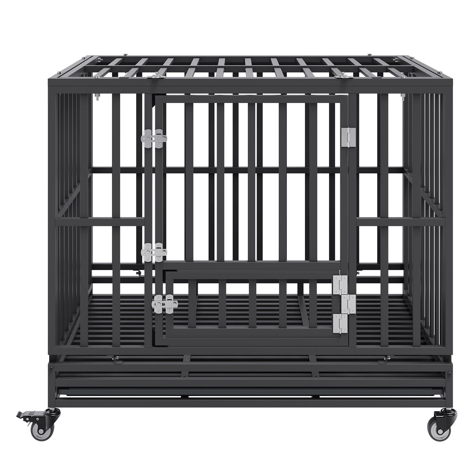 Our 42.1"×30.3"×37" heavy duty dog crate provides spacious space for medium to large dogs. It allows your pet to move, turn, stand, and lie down freely. The top door enables close interaction, while the front door allows easy access. You can provide food and water through the feeding door.