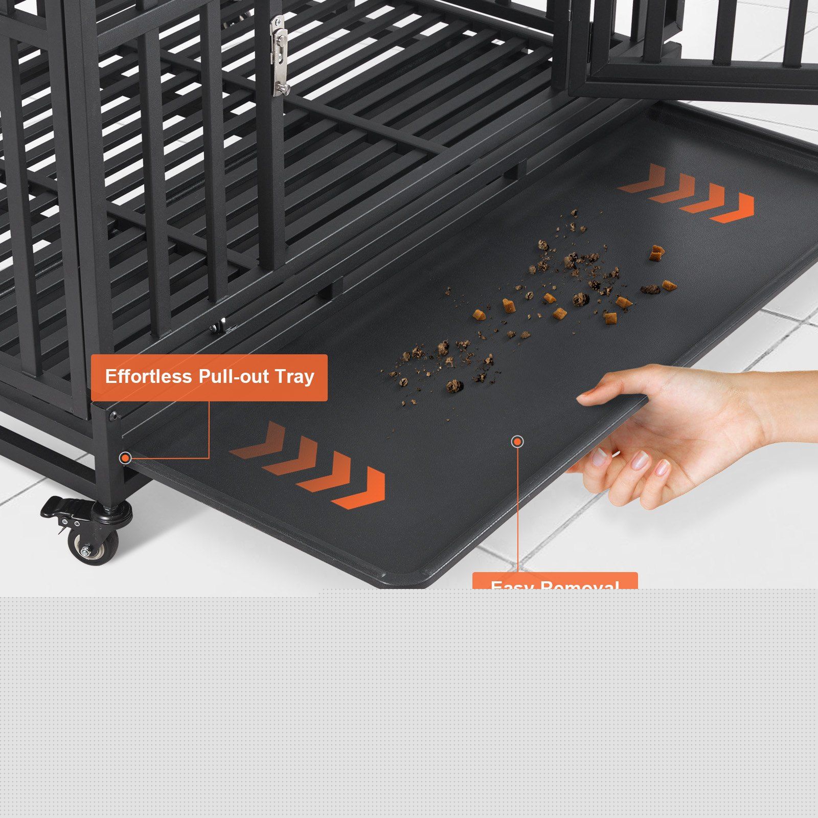 5.Versatile Tray Usage: Our Heavy duty dog crate comes with a thoughtful bottom tray design. It can be placed at the bottom to collect pet waste, keeping the crate clean and fresh. Alternatively, you can place it above the wire mesh to create a comfortable platform for your pet, preventing any foot entanglement.