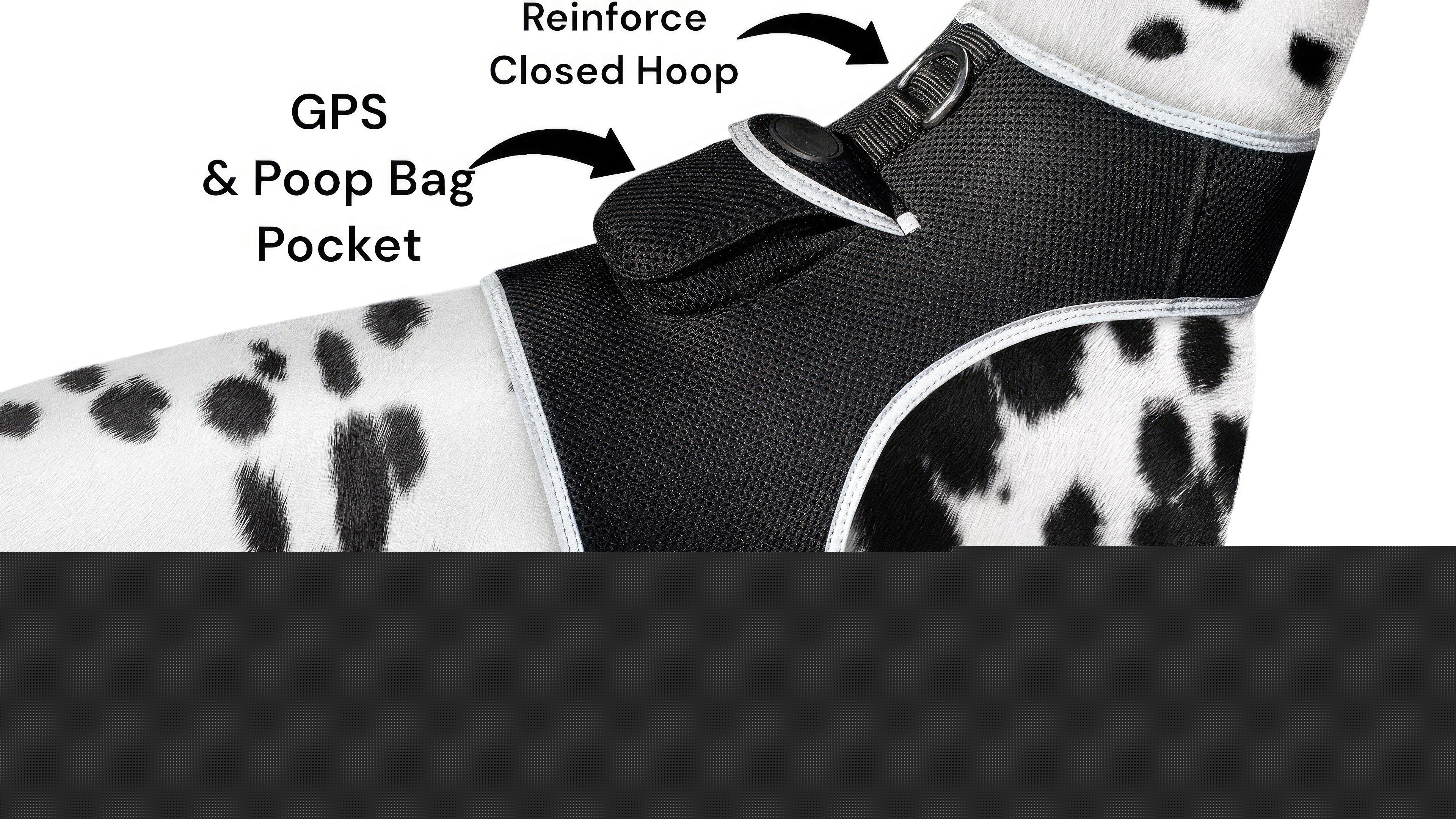 The pocket was designed to securely lock, and secure the GPS tracker device in place while your pet runs, plays, or swims. Yet easy for human to remove to charge the GPS pet tracker device. Oh! and dont forget to store your poop bags!
